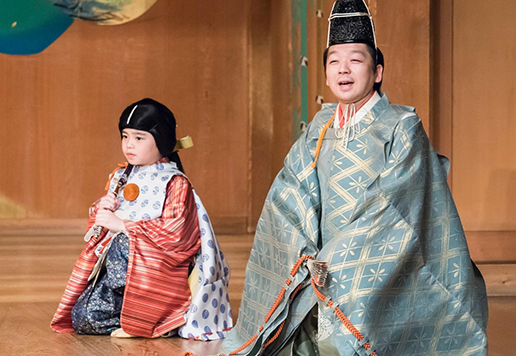 全国各地に千五郎家のお稽古場があり、愛好家として狂言を嗜んでもらい、発表会にはプロの狂言師が使用している衣装に身を包んで、狂言師体験をしていただけます。